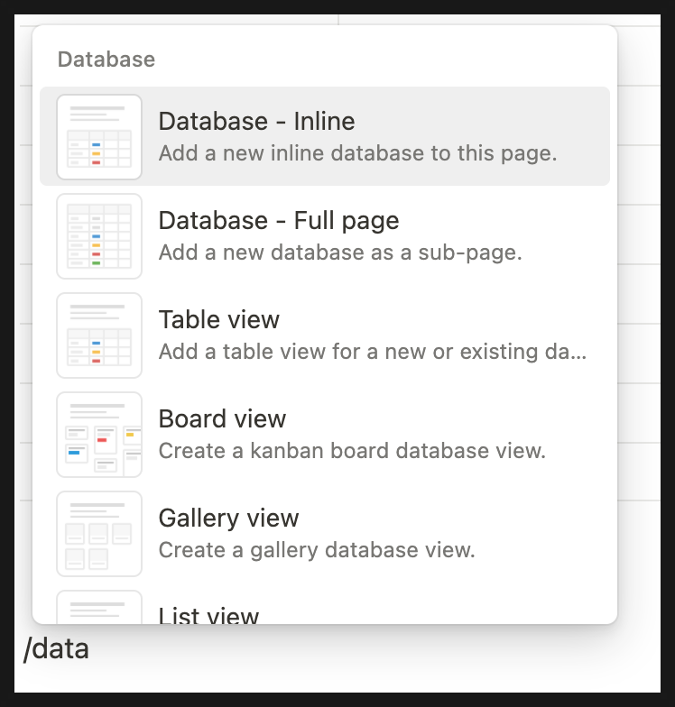 1. /Database - Inline 생성