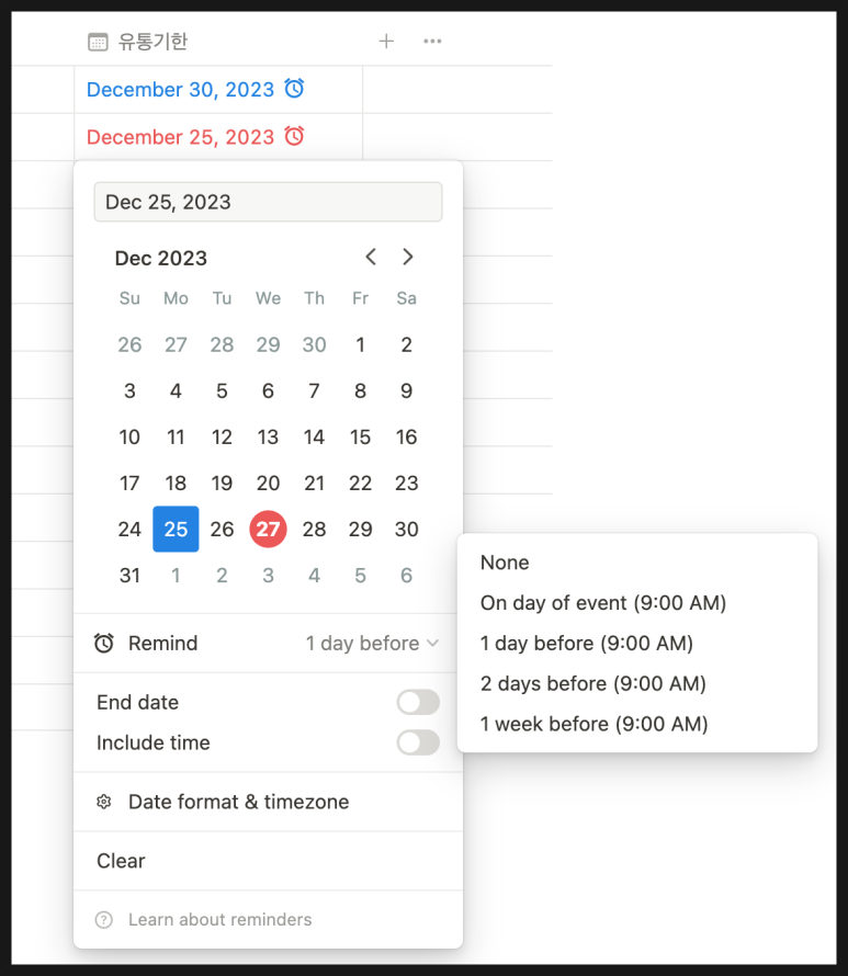 - 저는 하루 전에 알림을 받을 수 있게 설정했어요.